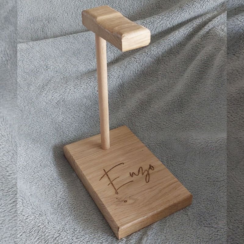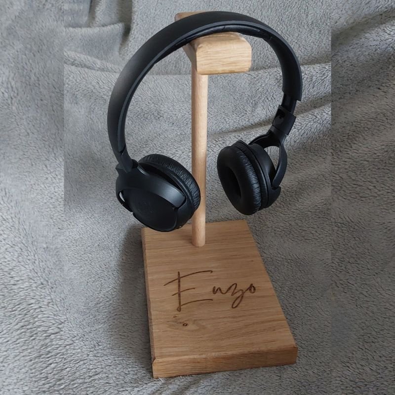 Porte casque audio en chêne massif personnalisé
