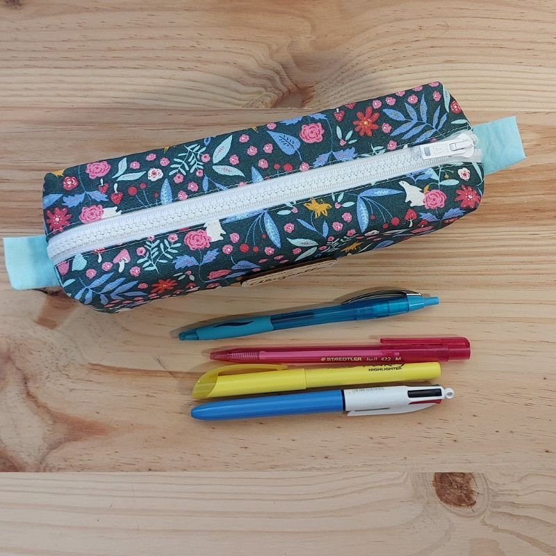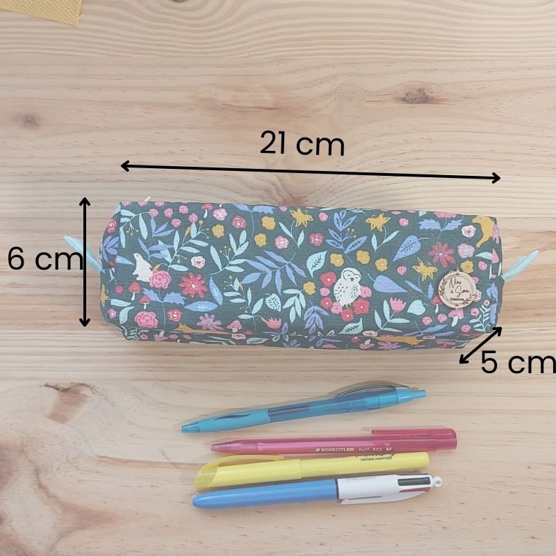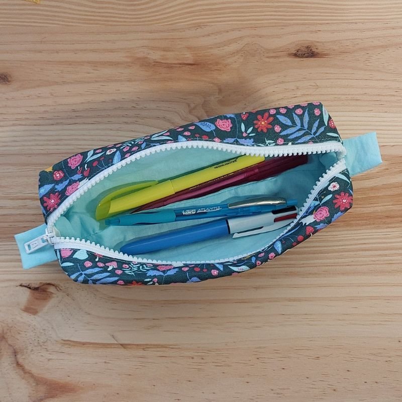 Cette trousse est confectionnée en coton enduit, un tissu imperméable qui protège efficacement les fournitures scolaires contre les petits accidents.