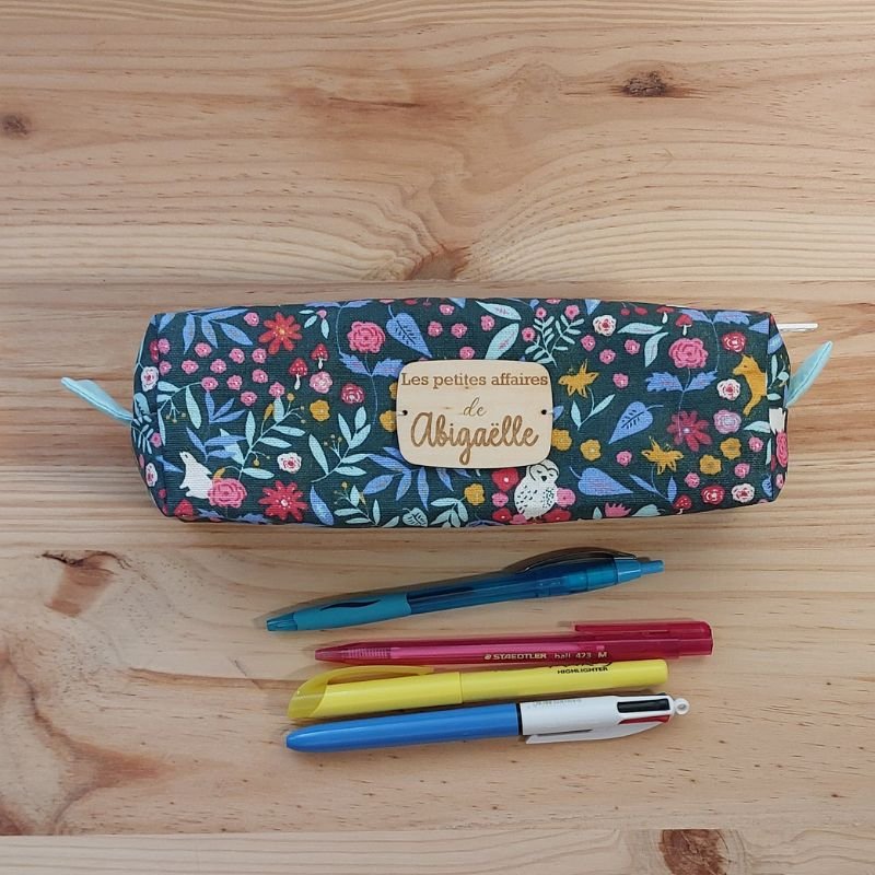 Trousse d’école personnalisée avec étiquette en bois – coton enduit imperméable